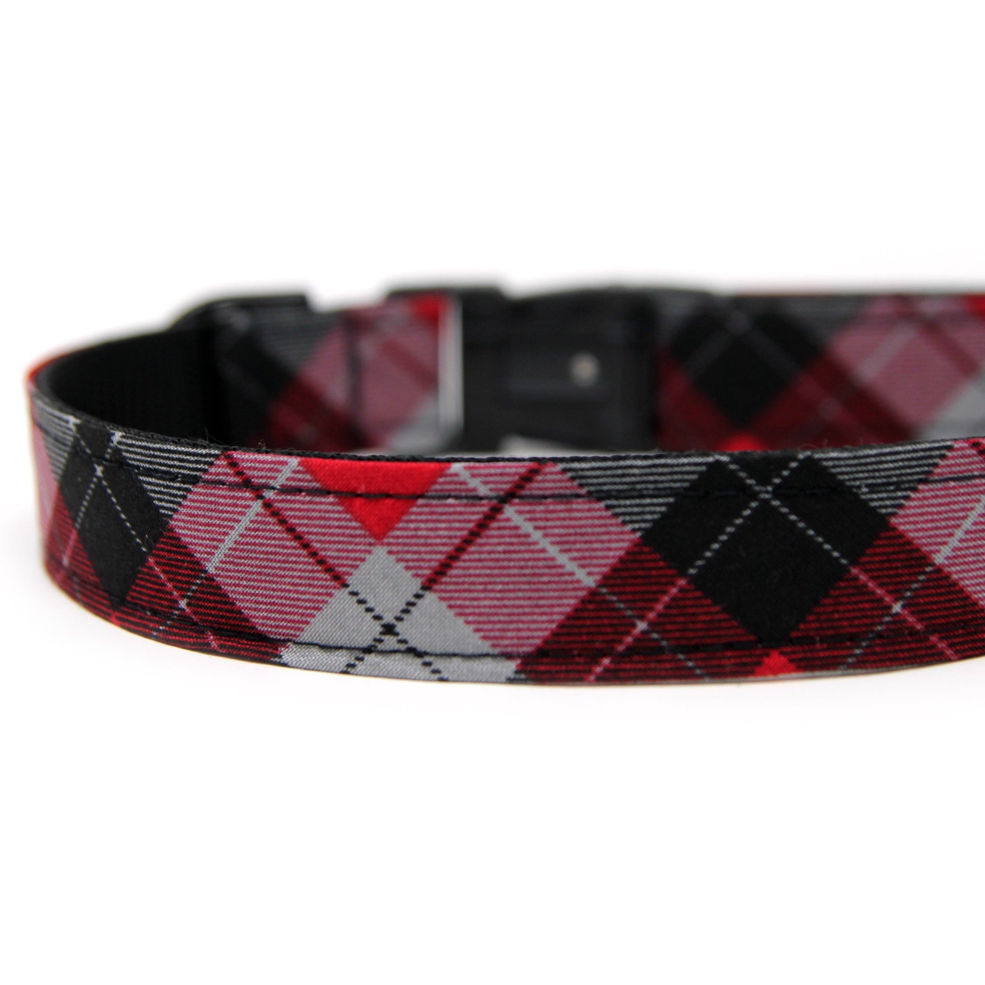 Give your companion the luxury they deserve with this red and black tartan dog collar. Your pooch will look uber stylish while staying safe with the optional personalization. No fear of the tags falling off because we add the engraving right onto the buckle. Please measure your pet prior to purchase to ensure a proper fit. Not all of our buckles are suitable for small breed dogs.