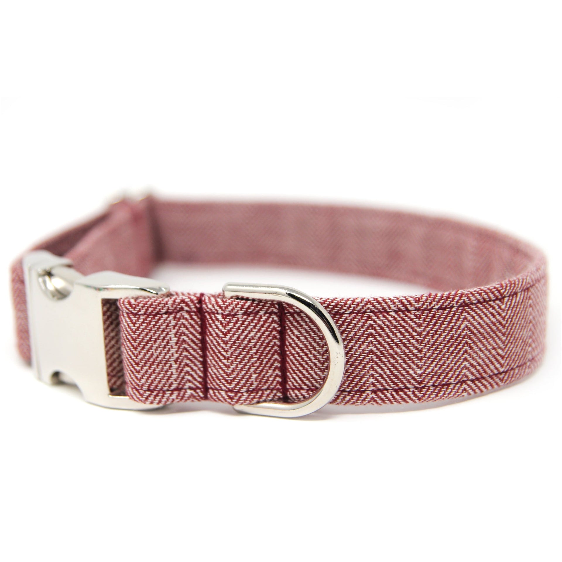 Herringbone Dog Collar Personalized-Wine Herringbone