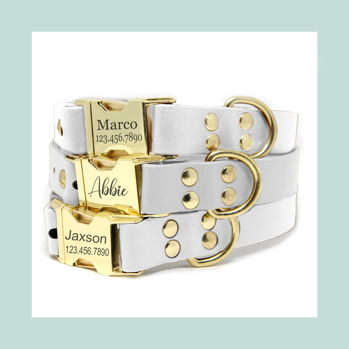 Crafted from durable Biothane material, this collar is both waterproof and odor resistant, ensuring your furry friend stays comfortable and dry no matter what. Add the optional buckle engraving for a personalized touch.Features: