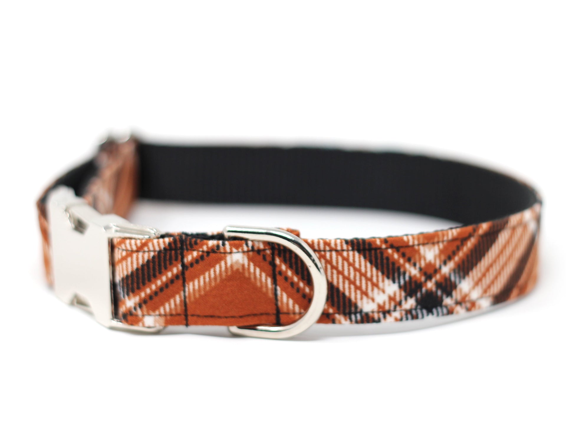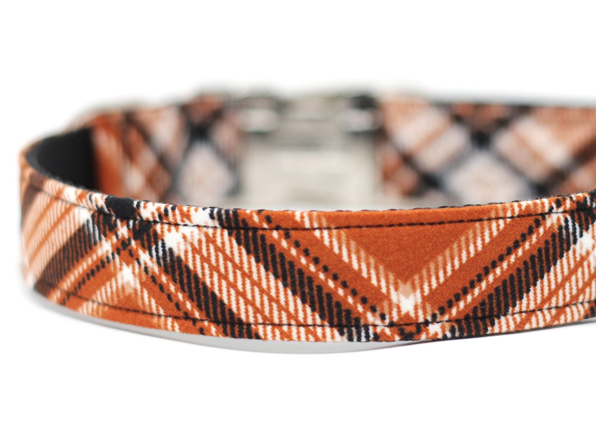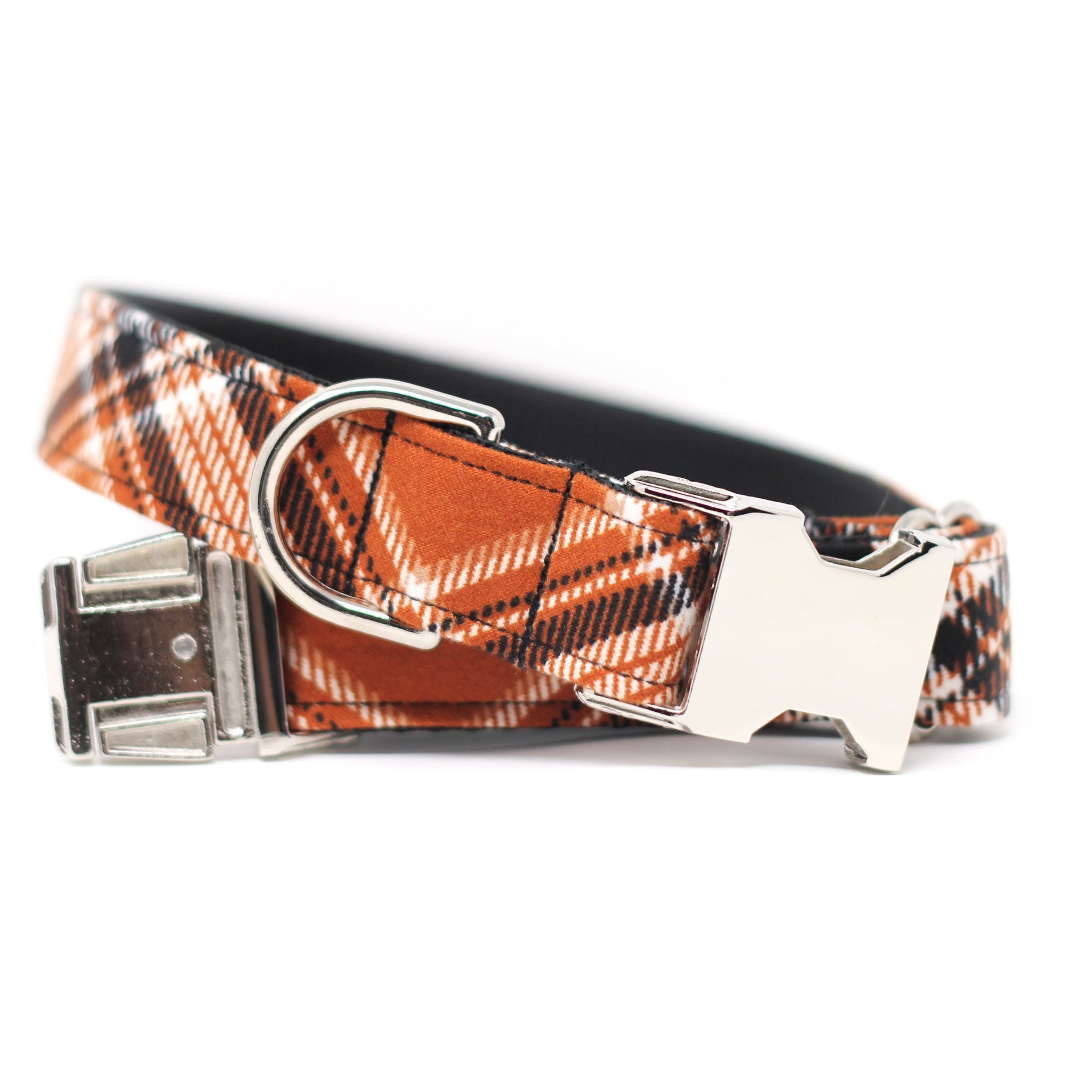 Your pup will look great and feel comfortable in this super stylish brown check collar. This black and tan personalized dog collar will totally glam up your pup's wardrobe and will look perfect, paired with a matching leash. Add some cute attitude to the overall look of your doggie while remaining safe by adding the personalization to this collar. Please measure your pet prior to purchase to ensure a proper fit. Not all of our buckles are suitable for small breed dogs.
