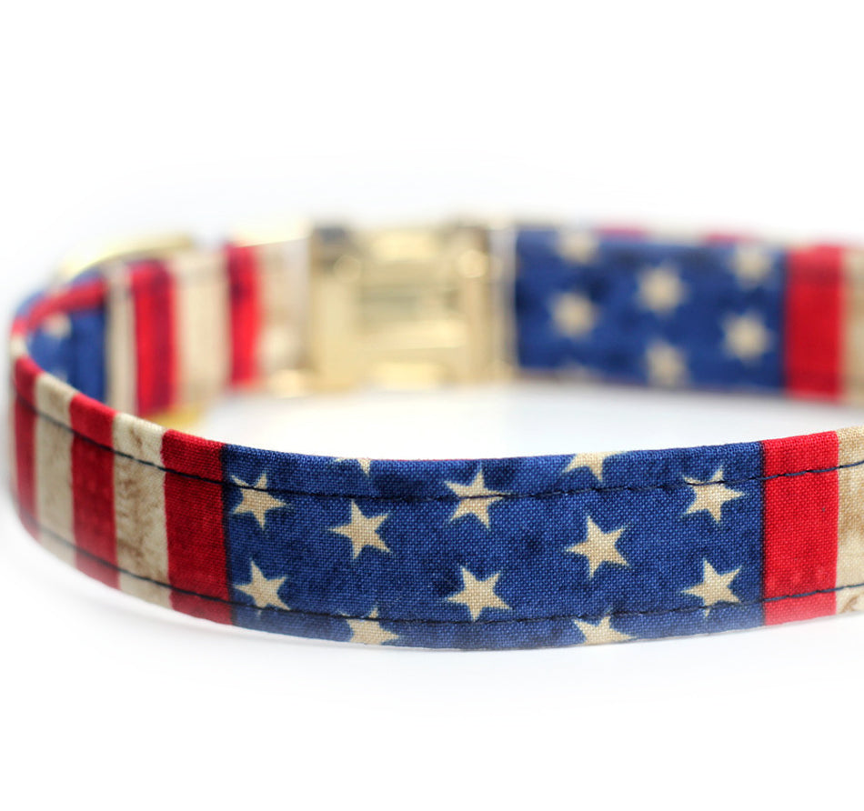 This collar is perfect for your patriotic pup. Red, white and blue stars and stripes.